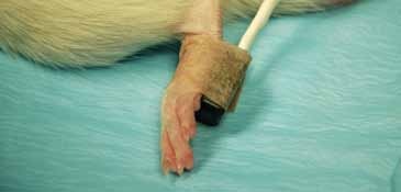 est pratique pour les vérifications ponctuelles et la surveillance pendant le rétablissement tandis que l’animal est immobile. Cependant, le capteur est maintenu en place par une légère pression de ressort, qui peut lui permettre d’être délogé par un mouvement. De plus, au fil du temps, la légère pression de ressort peut interférer avec le flux sanguin, entraînant une perte de signal et la nécessité de repositionner le capteur. Le 2000SL est plus facilement mis en place sur la patte arrière, mais la patte avant et la queue peuvent également être utilisées. Pour les souris, il vaut mieux placer le capteur haut dans l’aine.